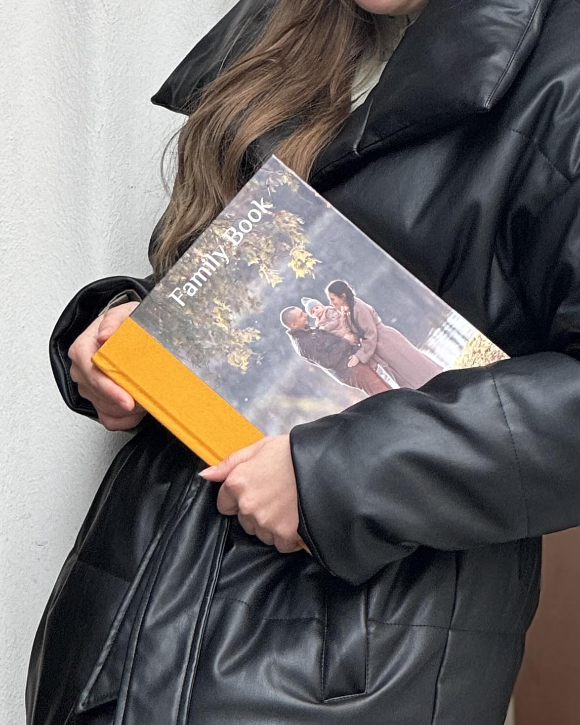 - Твердая в тканевой обложке. Премиальный вариант. Долговечная, приятная на ощупь. Идеальна для подарков и семейных архивов.