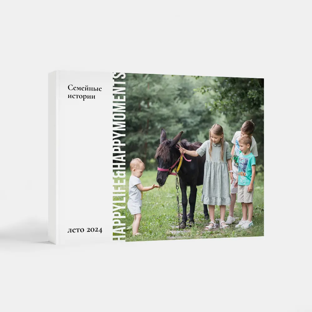 Фотокнига с фотообложкой горизонтального формата для пейзажей, семейных фото и праздников. Если у вас большой количество панорамных снимков, то фотокнига такого формата соберет их идеально.